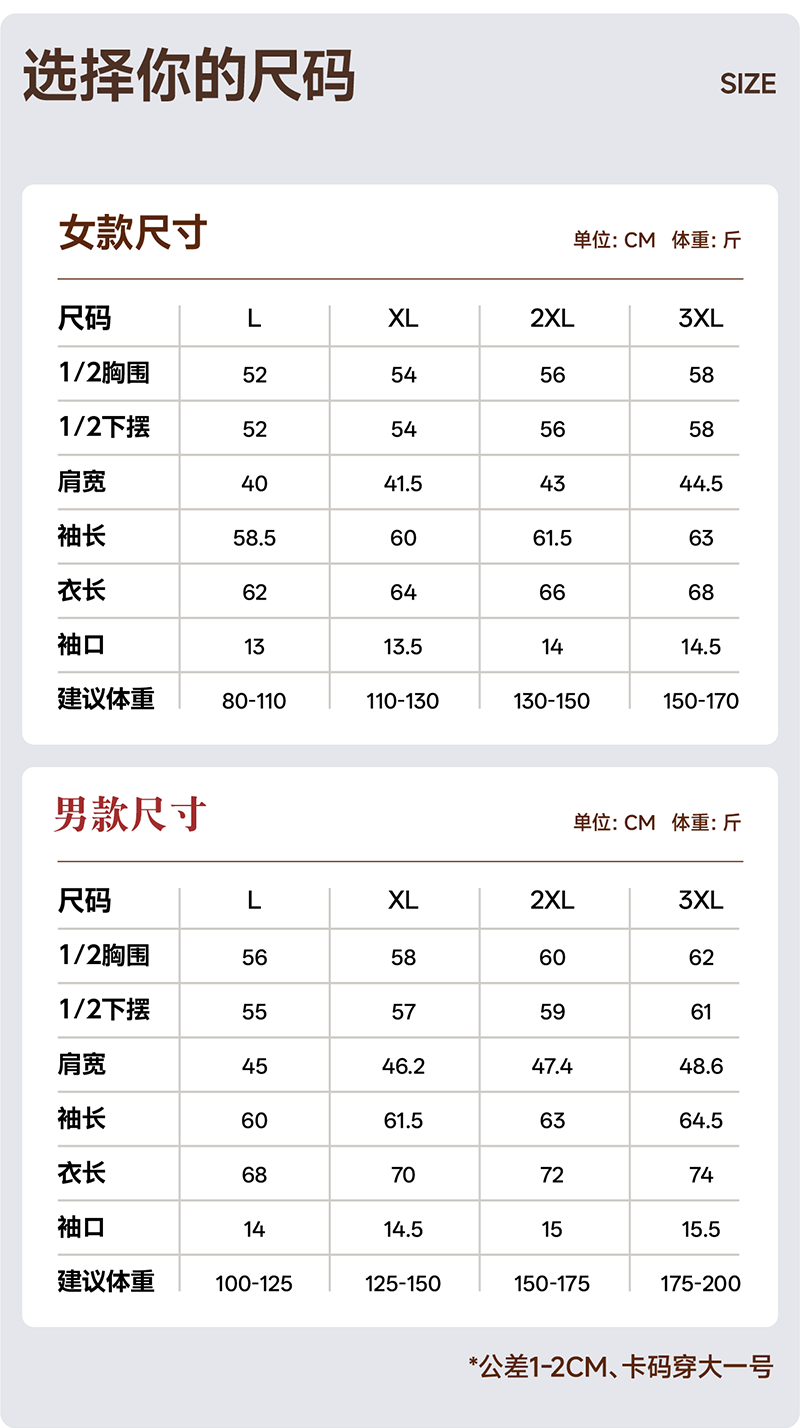 根据男女体型不同,进行了男女款分码,这个我仔细对比了一下实物,男款比较宽,上身会比较藏肚子。