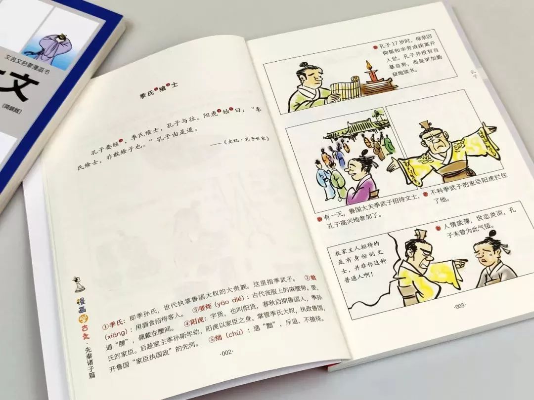 说实话,没有哪一个孩子不爱漫画,那些在历史中刻板的人物变得活泼跳动,每一个故事都变成日常对话的场景,让孩子轻轻松松的感受到古文的有趣,在不知不觉中将知识“吃进”脑海中。