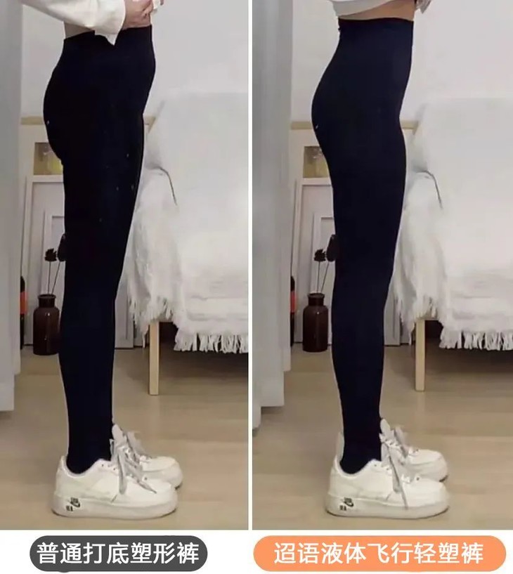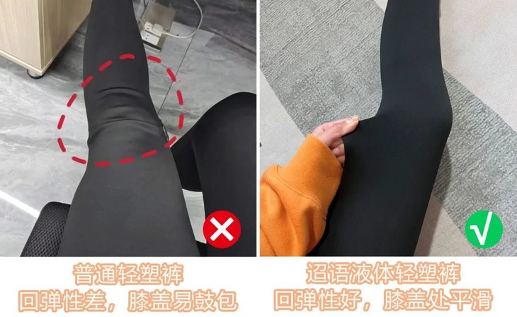 但这条液体塑形裤的最终目的是把你腿上松松垮垮的脂肪微压—塑形: