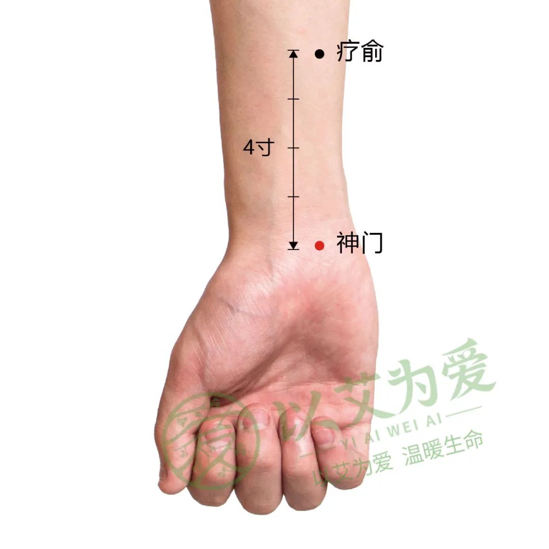 神门穴对失眠的缓解效果非常突出,用指腹按揉到有酸胀感,坚持1-2分钟后放开,重复动作5-6分钟。