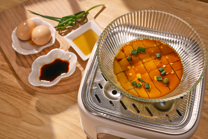 5、墩墩锅中加入适量清水,放上蒸架,把碗放上蒸架 选择“速蒸功能”蒸10分钟即可。