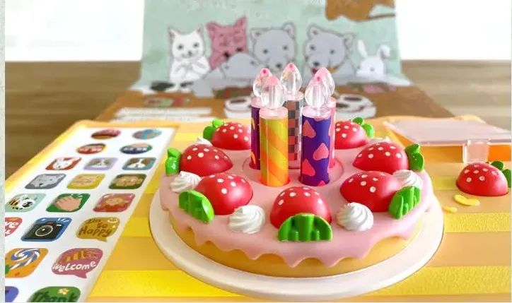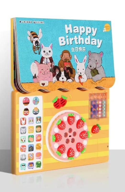 内容特点:有一个甜美的仿真草莓奶油蛋糕,蛋糕上的许愿蜡烛随着音乐响起就亮,页面上有两个按钮,中英文随意切换,10首英语儿歌朗朗上口。特别是8句常用英语口语表达,和7个暖心双语对话场景,极致细腻地创造了一个浓厚的语言环境。