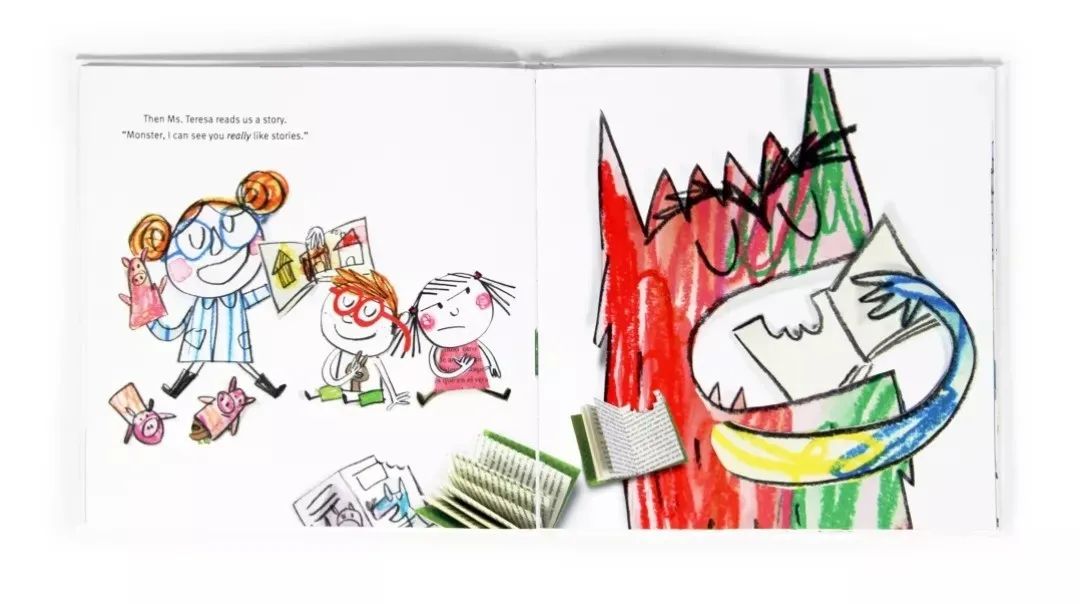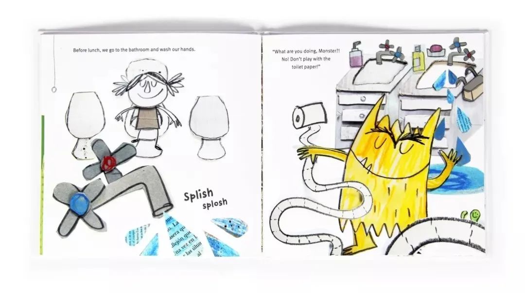 内容特点:作者按照时间轴线,一页一页地展示了小怪兽在学校会做什么、玩什么、吃什么……不仅交代了幼儿园各个时段的事儿,并且将小怪兽的情绪是如何转变的,也呈现了出来,让孩子对幼儿园生活,从外在到内心,都有了一个客观的参考。并且作者Anna的插画灵感都来自于生活,一个奇特之处,就是它明明将物体缩小了,但是呈现到视觉上,会有一种放大的效果,帮助提高孩子的注意力。