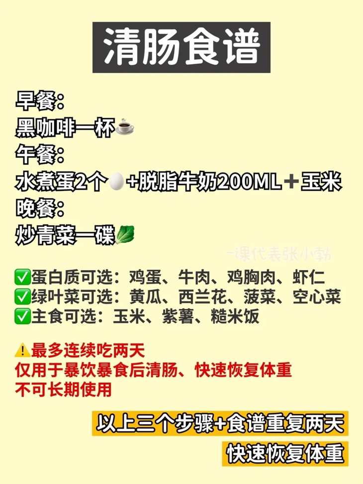🌈以上三个步骤+食谱重复两天,就可以快速恢复体重