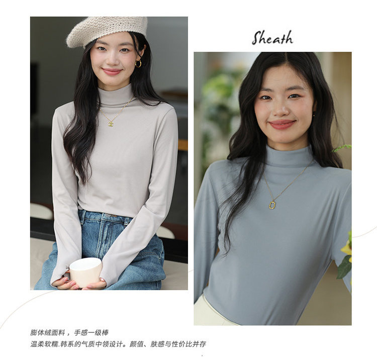 壳木这款打底衫,采用膨体绒面料,既舒适又保暖,秋冬、初春都很适合~~