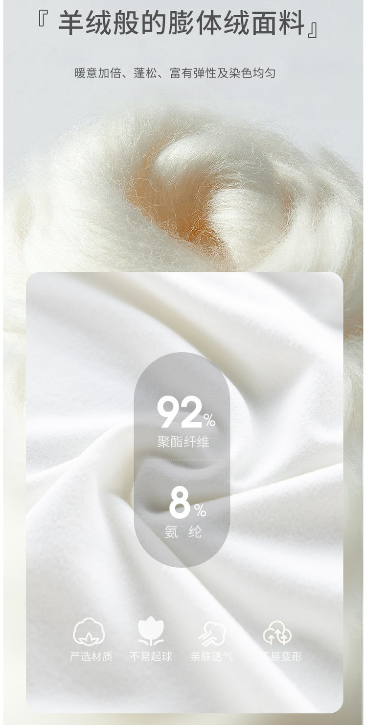 采用膨体绒面料,比普通的面料更软糯亲肤