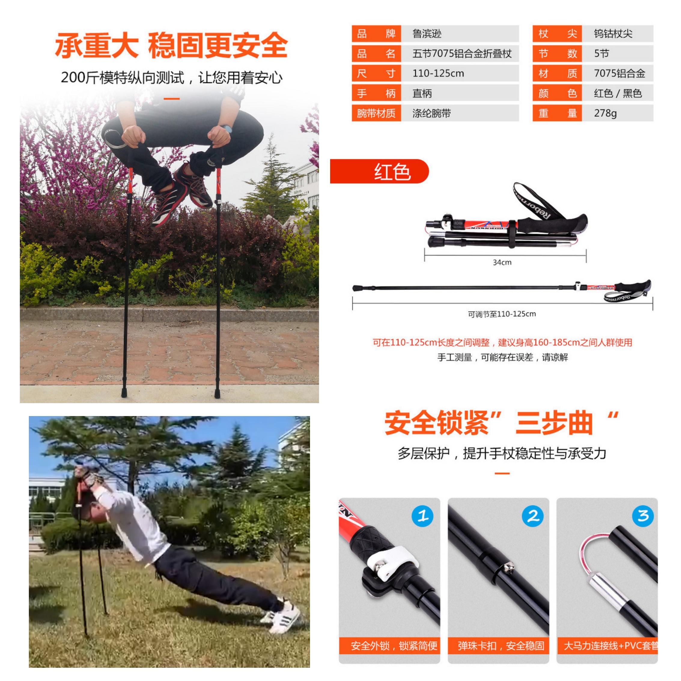 1、鲁滨逊 铝合金五节超短越野跑徒步登山杖
