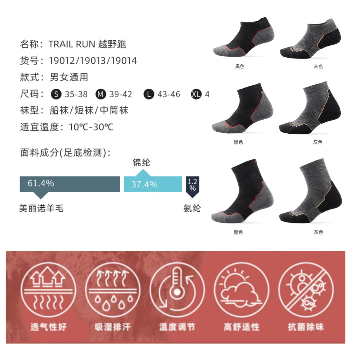 越野跑专用袜!船袜、短筒、中筒款式都有,适合10° - 30° 天气穿着,涵盖北方春夏秋三季!南方四季可穿~