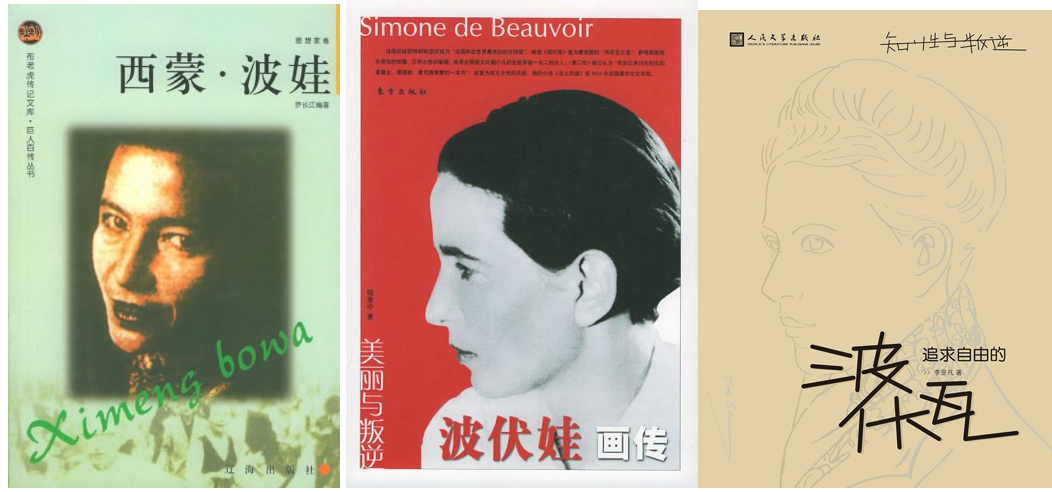 中文作家也出版过波伏瓦传。图为自上世纪90年代以来不同时期的传记:《西蒙·波娃》,罗长江著,辽海出版社,1998年;《波伏娃画传》,钱秀中著,东方出版社,2005年;《知性与叛逆:追求自由的波伏瓦》,李亚凡著,人民文学出版社,2014年。