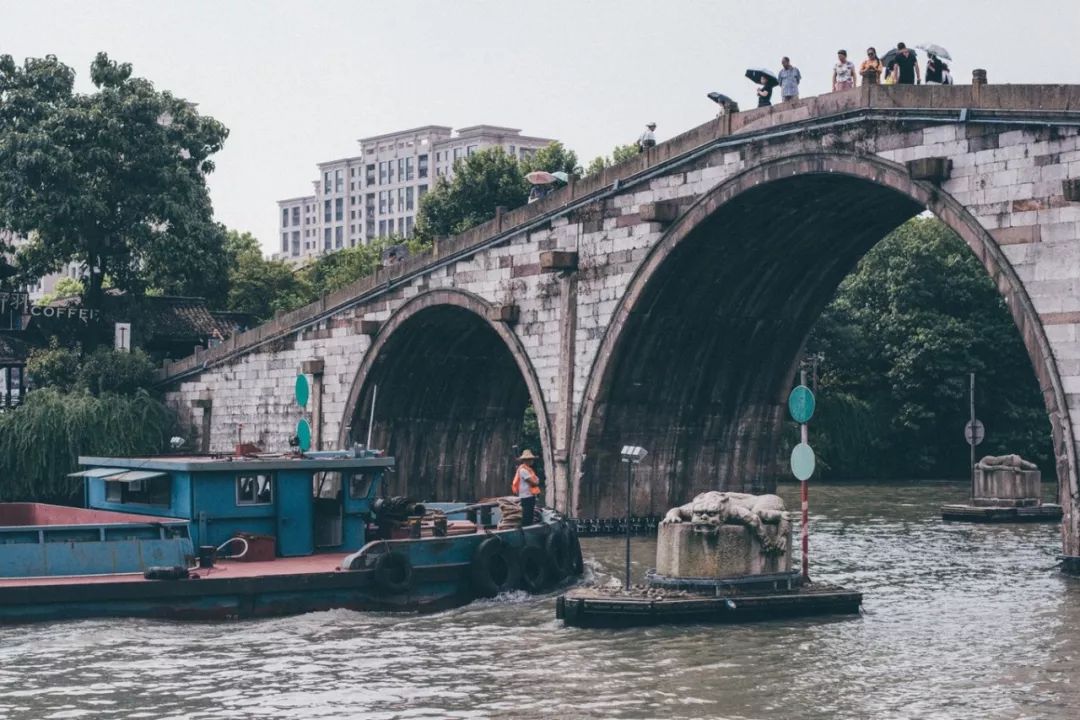 在拱宸桥桥西历史文化街区,则可以感受江南水乡的温婉静美,和京杭大运河两岸近现代工业发展的痕迹。走在其中,乘着河面吹来的凉风,安静地听河水拍岸的声音,在惬意之下感觉脚步也都变慢了。