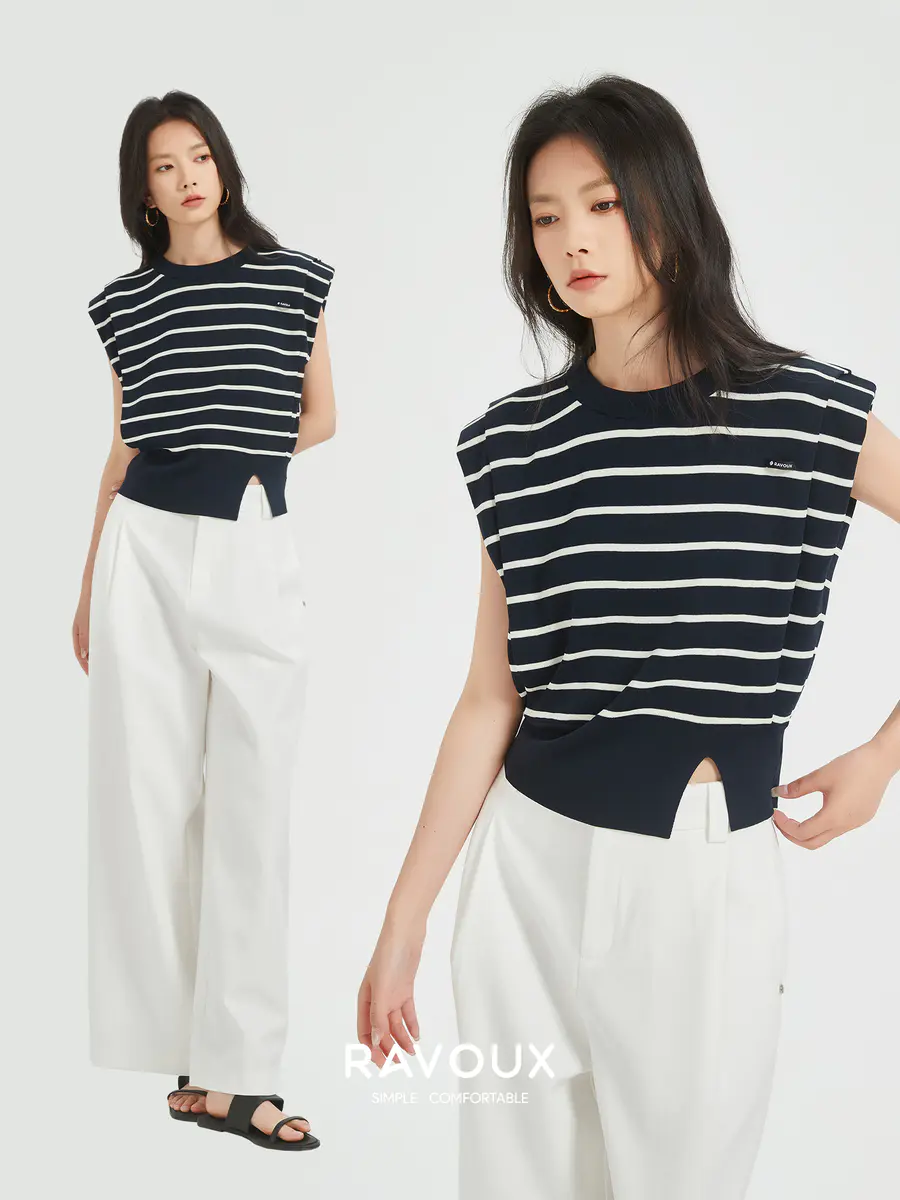 条纹+藏青=视觉收缩双倍buff