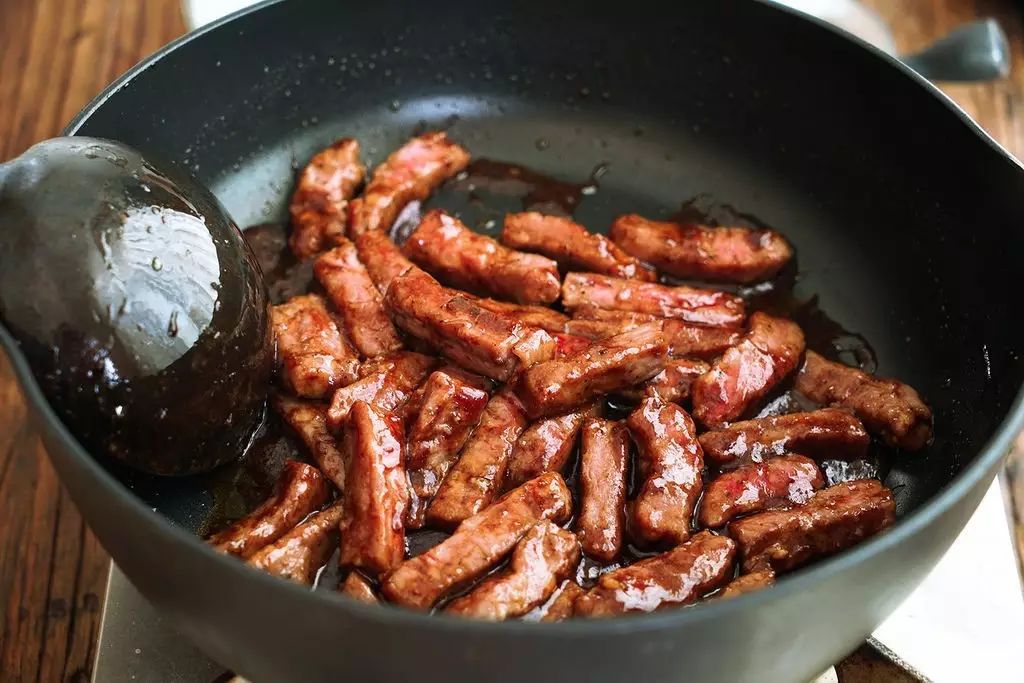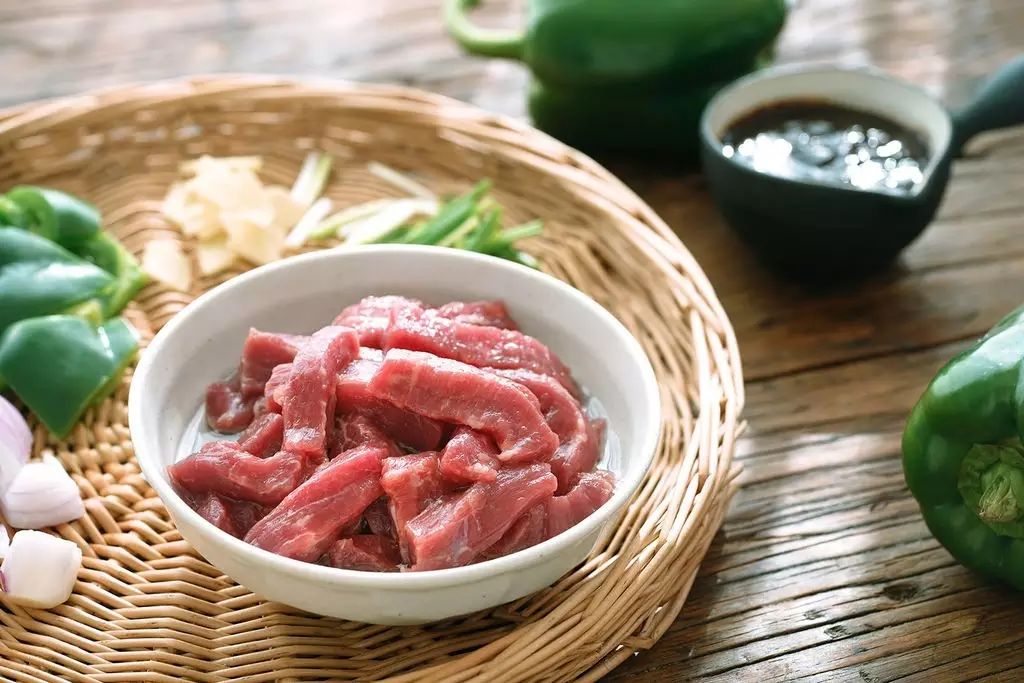 腌制牛肉时,最后放一勺油,目的是让其与空气隔绝,能够更好的入味。如果有黑胡椒酱,可替代黑胡椒,味道会更加浓郁!