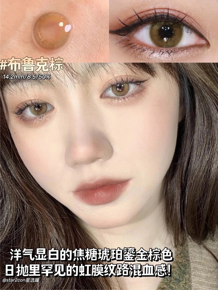 虹膜设计融瞳感更佳,覆盖原本瞳色呈现天然琥珀瞳