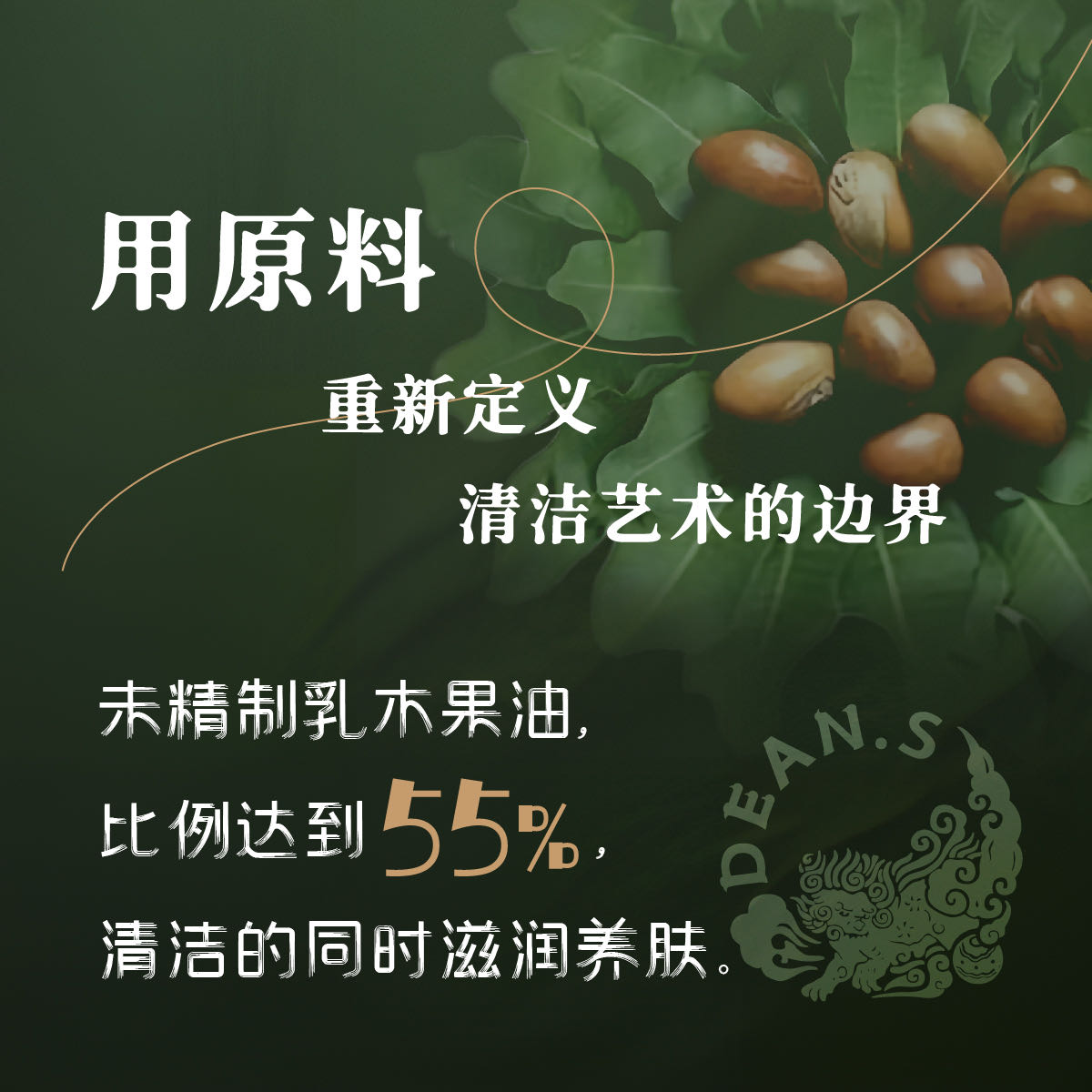 用好原料:使用未精制乳木果油达到55%比例,远远高于市场比例,清洁的同时滋润养肤。