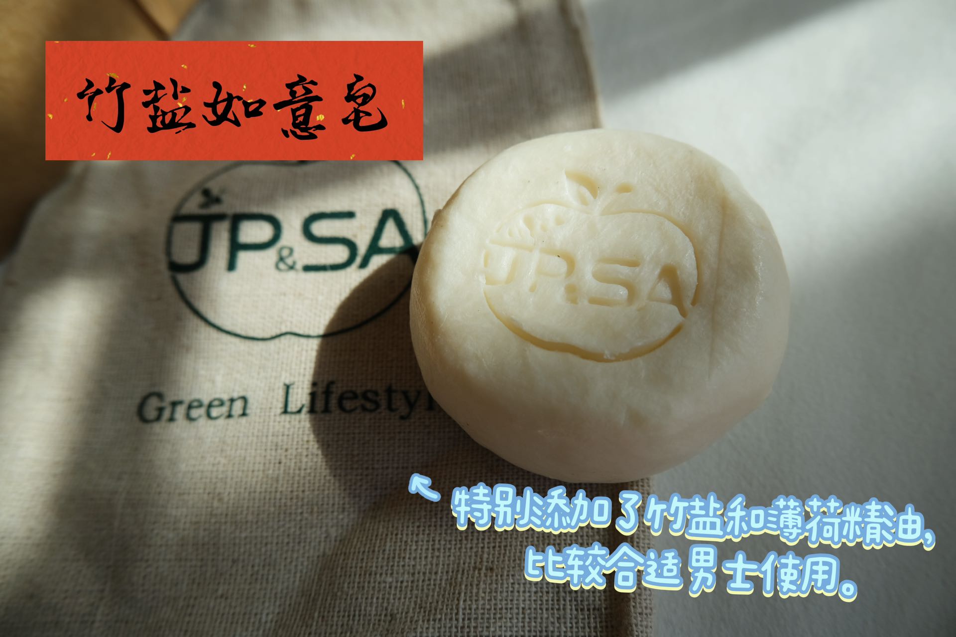 竹盐如意皂(合适男士使用):椰子油,乳木果油,亚麻籽油,竹盐,薄荷精油,佛手柑精油。