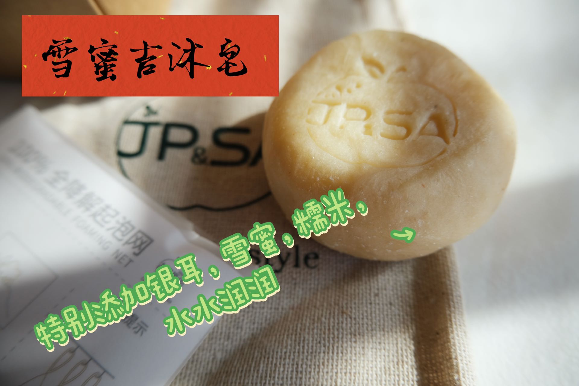 雪蜜吉沐皂 (沐浴皂) :橄榄油,乳木果油,有机银耳,枸杞,糯米粉,椴树雪蜜,白桃果肉。