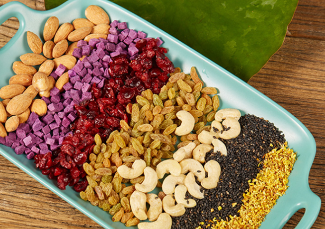 但坚果和果干的比例怎么调,选哪些坚果和果干,怎么让它更特别一些?口味、颜色、营养每一个都有学问。