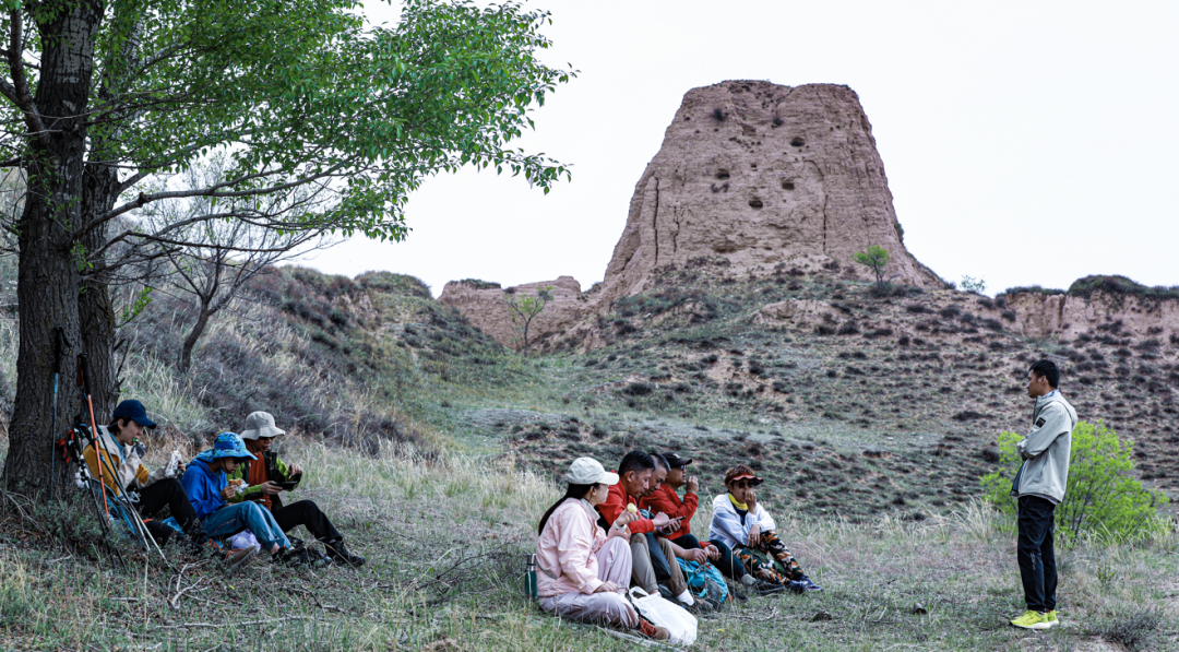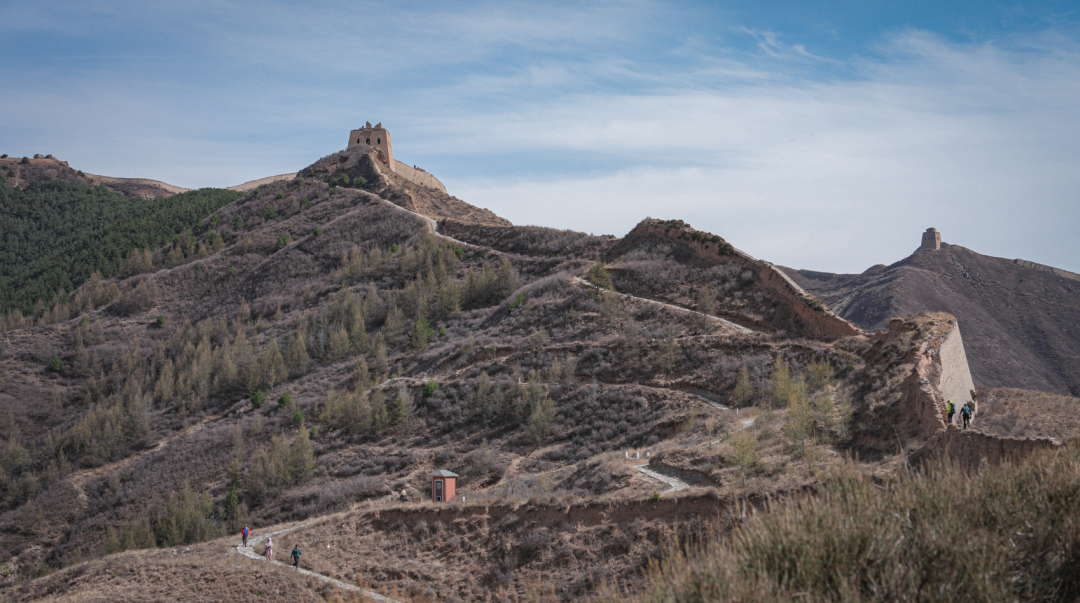 编者著:本文节选了三位队员的游记,借用队员不一样的视角,一起分享了他们眼中的晋北野长城,而长城的魅力也远不止于此。不走一次晋西北,怎知长城之伟大?左手关外蒙古,右手关内山西,一边苍莽远野丘壑,一边树林缓坡农田。两天30公里,或田野坎坷、或墙垣草径、或深壑裂谷、或树林穿梭……站在广武野长城的烽堠残堆上,巍峨雄风似乎还在。眼前是开阔的大同盆地,新广武城和旧广武城与雁门关一左一右,形成犄角之势。站在仅可一人行走的窄小残垣上,沿着一条野草半掩青砖与土的野径行走。南望着连绵的长城一个墩头又一个墩头。很多风化的砖石包砌部分剥落了,留下很多凹坑。从墩台内的箭窗券洞向外瞭望,但见阳光下山峦蜿蜒,一层层的山青色包着太阳的金边,重浪般铺叠远去。风化的城墙残壁很难下脚,日光西下,漫山似乎只剩下这野长城了,周边喧嚣的人声也渐被风声湮没。我突然沉默下来,但愿你们也能明白我此时心境:铁马冰河入梦来。长城徒步的第二天才算是此次的野长城之旅,它们散落的伫立于旷野与沟壑,仅剩下夯土的烽燧与墩台遗迹。不但没有任何包砖痕迹,甚至连那些夯土的墙垣都已经坍塌,已经大部分融入了自然环境,与两边的草原和农田和谐共生融为一体,野草和荆棘昂然宣告着对这片野长城的所有权。中国长城在山西境内纵横3500公里,晋西北这片野长城却是人迹罕至,无人得识。历史的厚重与岁月的沧桑都隐没于这片荒野,一如伫立在云石堡外的石头上所书写“烽火已无痕,威仪今犹在”。野长城,在这里真的野啊,野的只有吹了千百年的风沙才敢一本正经的带着刀砍向这片土地。砍的长城只剩下少部分的夯土浅基。我要如何向你们描述这里的美呢?这里有最野的风,也有最野的草,更有最野的城。这种粗犷的美、壮丽的美、历经风霜雪雨的美,唯有亲历的人才能够体会、才能够感叹、才能敬佩之心油然而生!杀虎口被誉为京都之锁钥,三晋门户,九边总汇。这里是历史上重要的税卡,是中原与北地通商的必经之路。茶马粮盐的车辙碾出边镇的繁荣,也催生出“西口文化”。站在这片土地上,每一块残石,每一寸黄土都浸润着历史的厚重。一直伫立在这里的野长城,如今已经不仅仅是防御工事的遗址,更是中华民族的精神和力量的象征。站在时光隧道的这一头去聆听历史的回声,那些秦伐汉驱,唐战宋抗,明驱清征的兴衰荣辱事,就像是燃烧熄灭的战火灰烬中的一点点星火。即便相隔近千年,仍裹挟着历史的余温向我们迎面扑来。