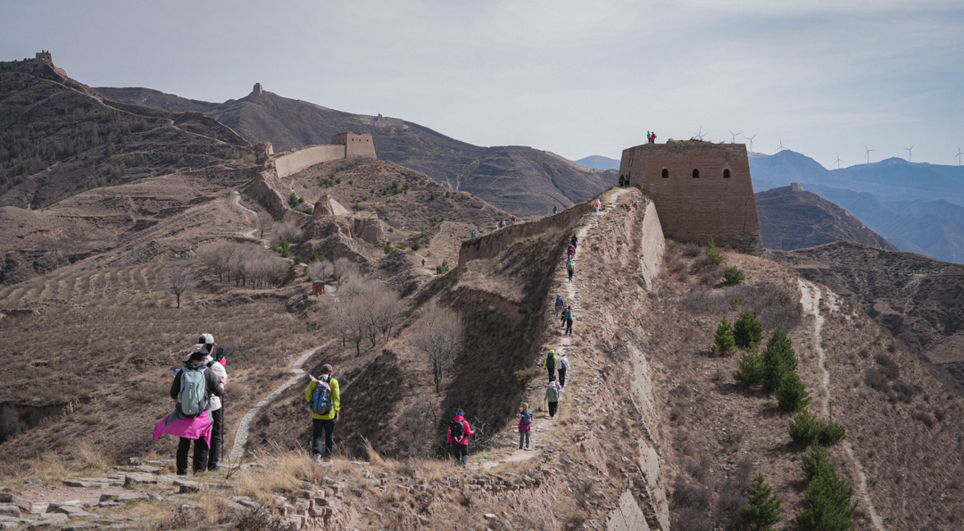 要想体验古长城文化“一座雁门关,半部华厦史。”远朓四方,巍峨长城,延绵不绝。走出这道关门就是塞外了,当年王昭君就是从这里出塞和亲的。“羊马群中觅人道,雁门关外绝人家,昔时闻有云中郡,今日无云空见沙。”踏上古城墙,极目远眺,茫茫荒野,古长城蜿蜒逶迤,土墩台遥相守望;有人说,文化是行走的灵魂,而行走与发现是文化的载体。我觉得,尤其是行走在如此历史厚重的古长城上,时光无情地过滤掉当时的人和物,过滤不掉的,是留给后人的遗迹与财富,一段几百年不曾逝去的历史在脚下走过。站在土城墙上放眼望去,古长城和风车阵映入眼帘,这是一场超越时空的古代与现代的对话。走累了,找个山头歇歇脚,坐在这里,适宜完全放空自己。走在荒野上,除了苍凉大地,寂寥的风和蜿蜒的土长城,偶尔也见到牧羊人和他的羊群。城墙上风声呼呼,犹如当年狼烟四起,金戈铁马阵阵喊杀声。从云石堡 - 十三边 - 三十八边 - 四十二边,全程徒步 20 公里!累并快乐着,快走出山时,看到八百多只羊从山上冲下来回圈的壮观场景。没想到在荒野上有一棵生长得如此茂盛的沙棘树,能让我们在树荫下歇歇脚,喝口水。我们拍下这一段段破败的古长城,这里留下无数的兵家兴叹,成为沧海桑田,朝兴朝落的历史见证。走着走着,看到一条深沟,分开了山西和内蒙,我们一脚跨两省,模仿当年两军隔沟喊战,大家都开心地大笑,疲劳感也瞬间消失了。人在大自然面前是如此的渺小,而千千万万渺小的人聚集起来却能修建出如此壮观的万里长城!