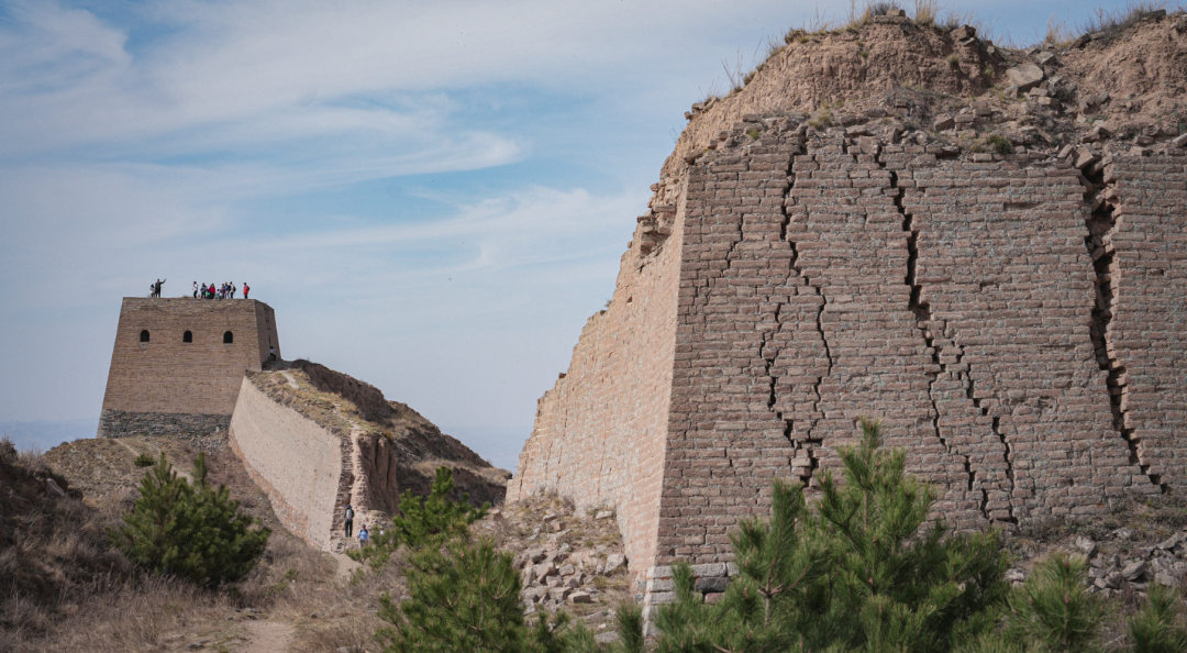 游山西就是读中国历史右玉县境内的明长城大约90公里。观察现存的城墙、墩台,可以发现它们的砌筑材料主要是泥土夯筑,底层是砖石合筑。