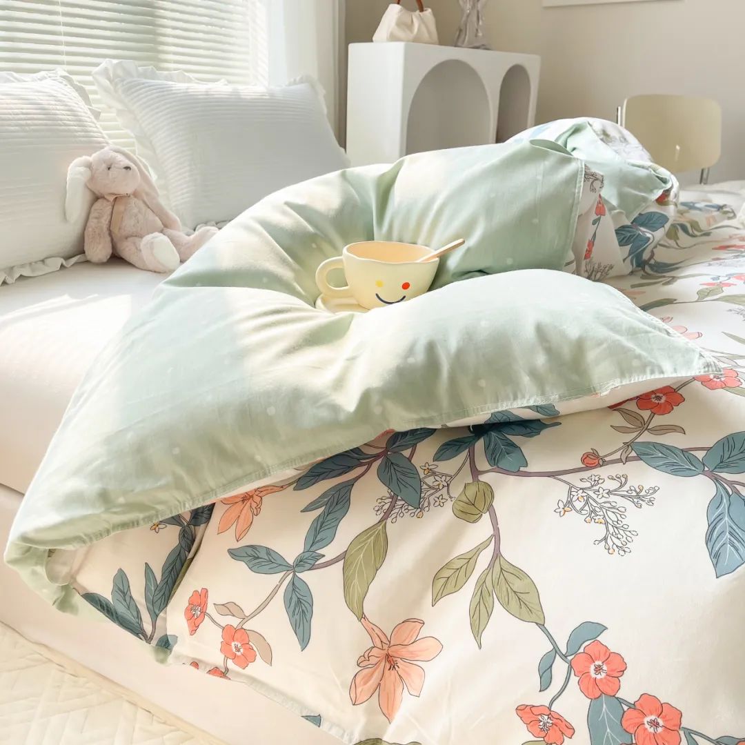 法国金鸡四件套特意做成了AB双面设计,A面为碎花,B面为纯色系,反过来也能盖,买一套等于拥有了两套~
