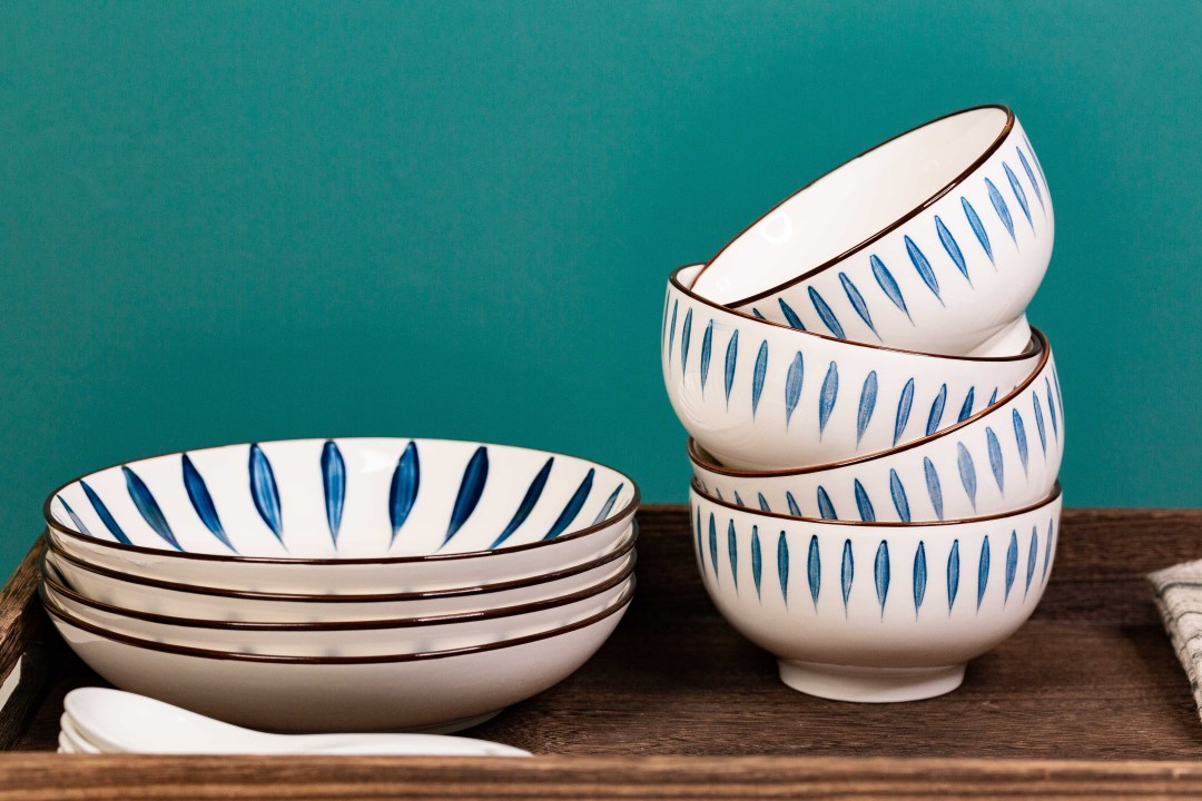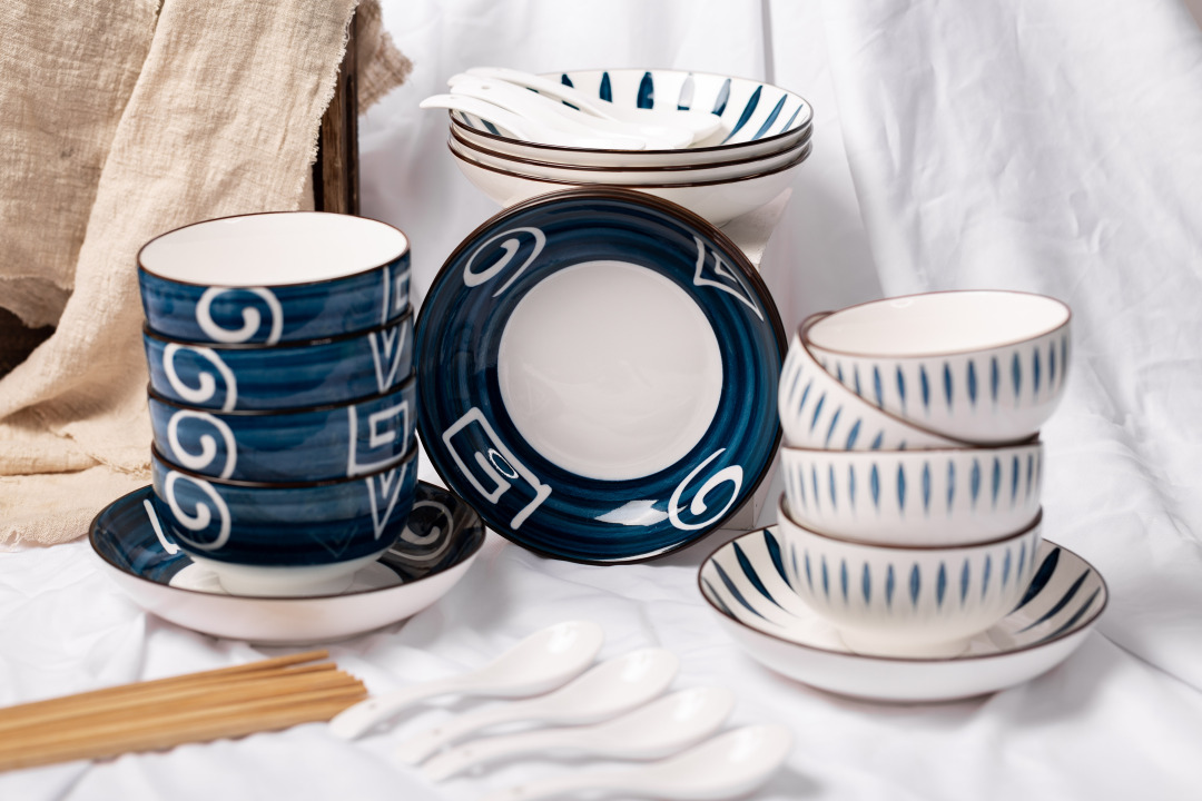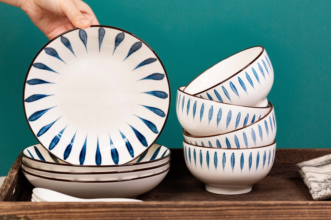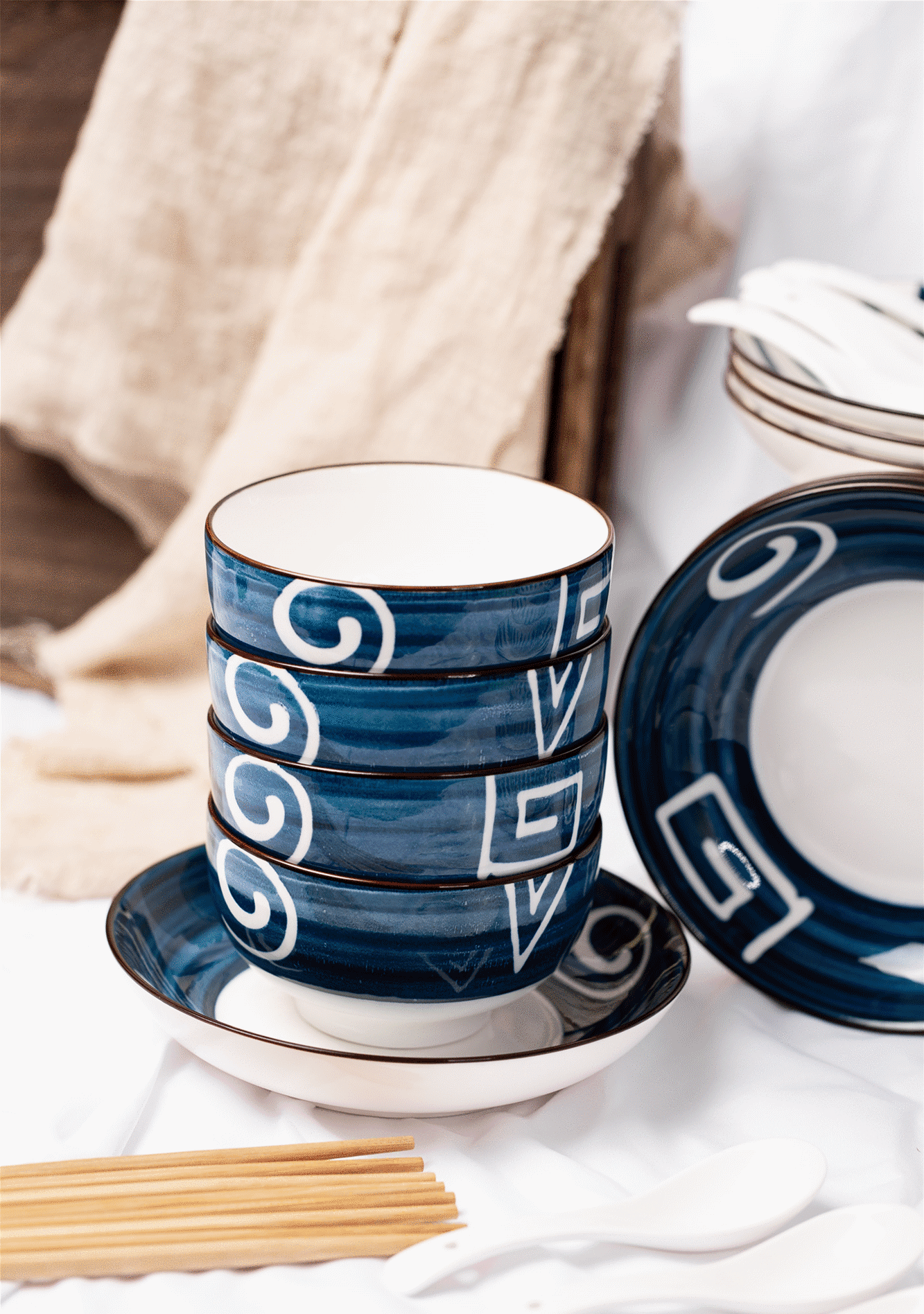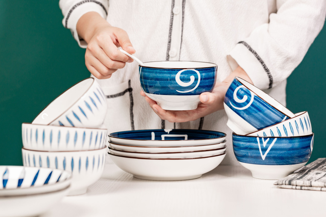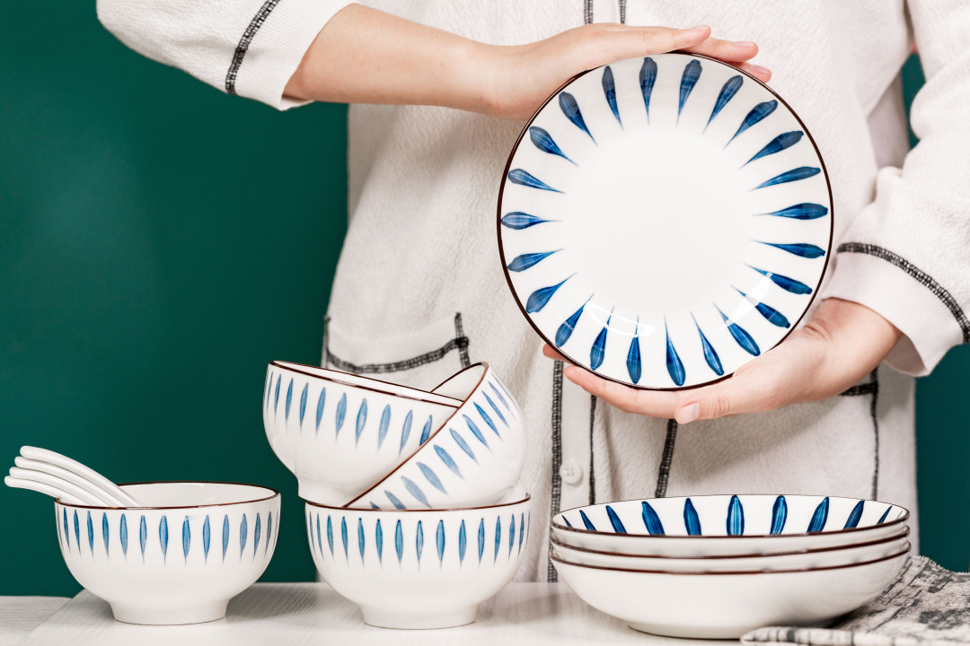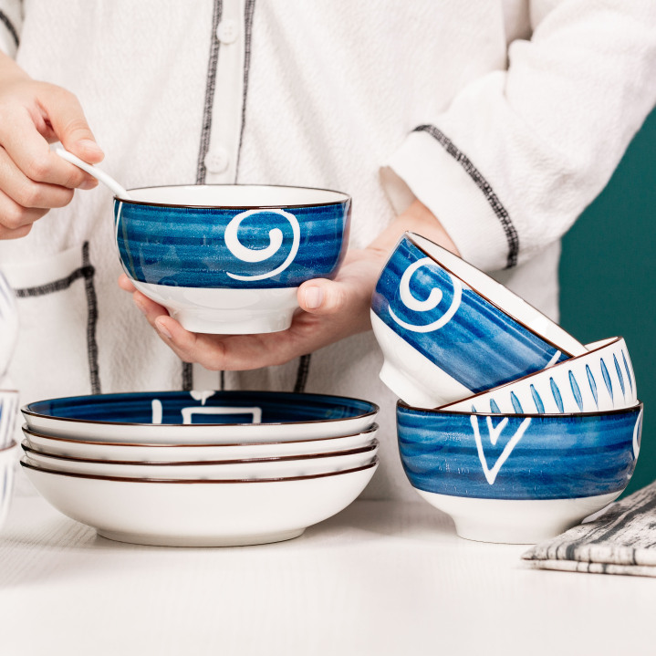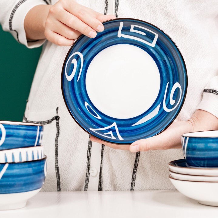 这套日式和风餐具,采用当下特别流行的“釉下彩工艺”高温烧制而成,每一道痕迹,都赋予碗盘鲜明的个性与风采。