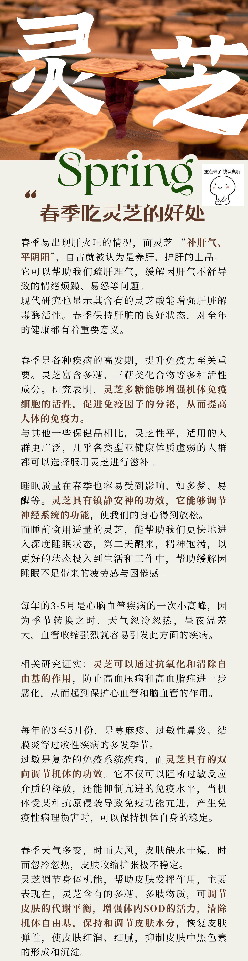 如果你最近也觉得自己情绪起伏很大,感觉耐心值为0,不用担心内耗自省!这不是你的问题,而是你的火气太旺了,春天肝气生发是正常的!这时候就特别适合吃点灵芝孢子粉,具体知识看咱们的图片科普吧!