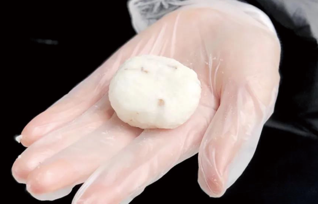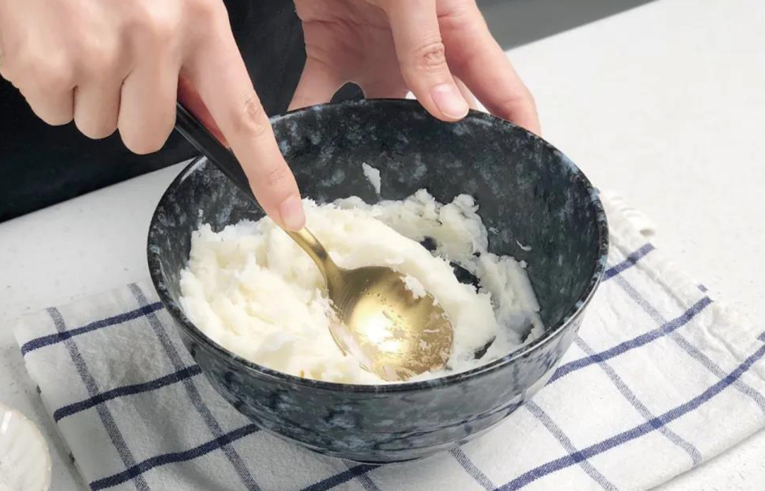 抓取适量,揉成圆球状,再轻轻压成小饼状;