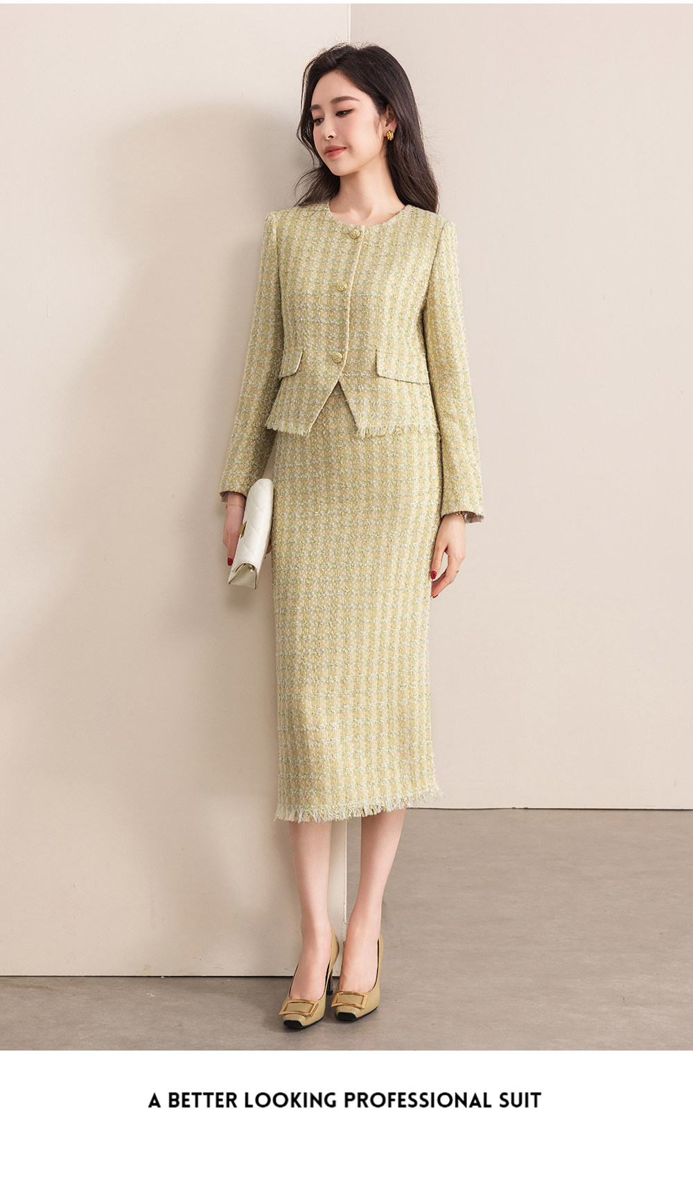 让这套穿搭在温柔中透着干练,