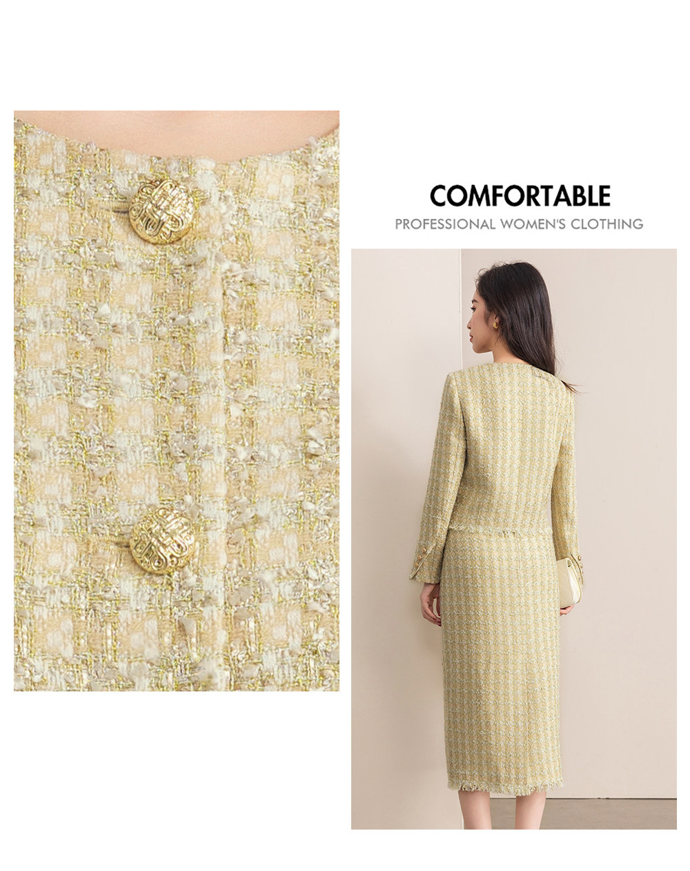 粗花呢的质感自带复古韵味,