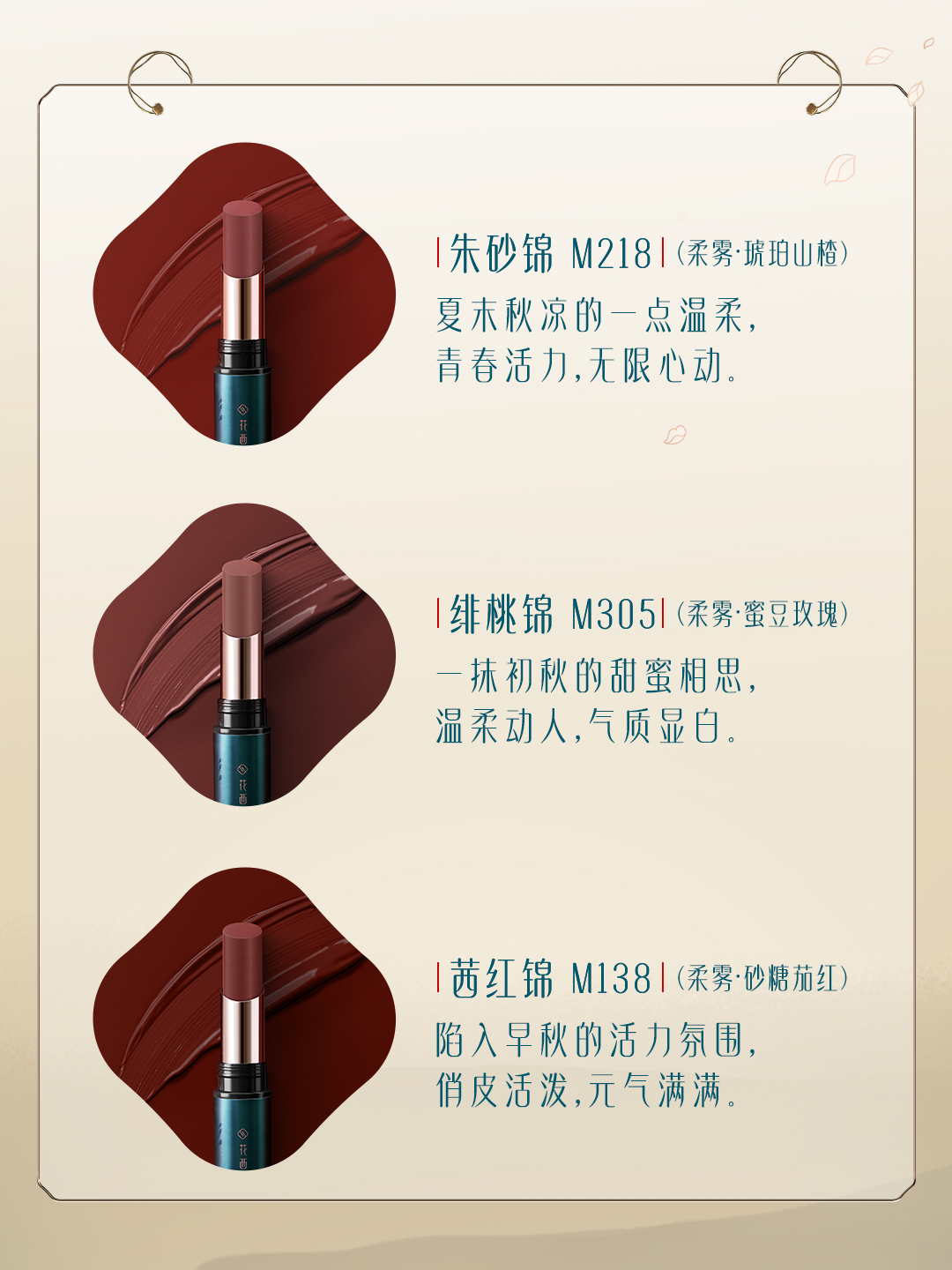 随着秋日气息越来越浓,是时候换一波新口红啦!快滑动选取你最中意的秋日氛围感图片,来找寻今年秋日你的本命口红色号吧~