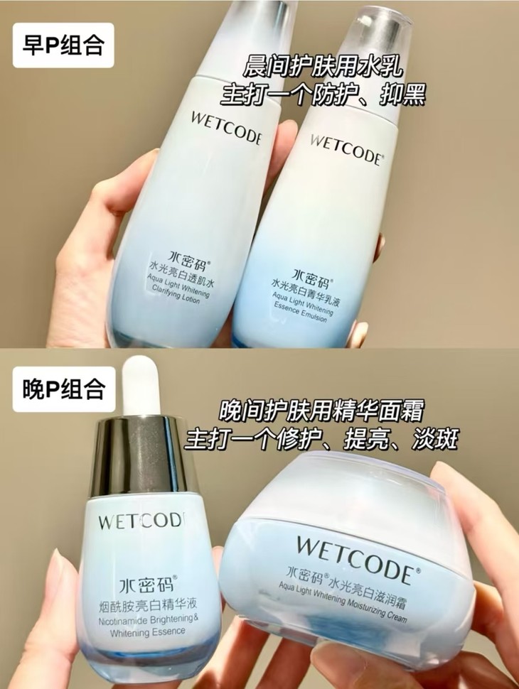 一个系列包含洁面、水、乳、霜、精华,早晚护肤都安排好了