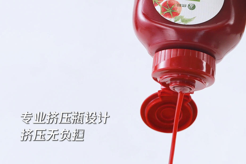 鲜活红润的色泽、简洁有型的瓶身,独有的瓶盖技术,健康安全高阻隔透明材质,传递着禾然有机在简单调味中追寻有机、健康的理念~