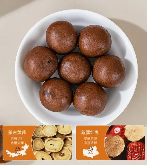我们效仿古法,通过配方改良,把黄芪和红枸杞、红枣,桑葚、小黄姜配在一起,做成了药食同源的小零食。