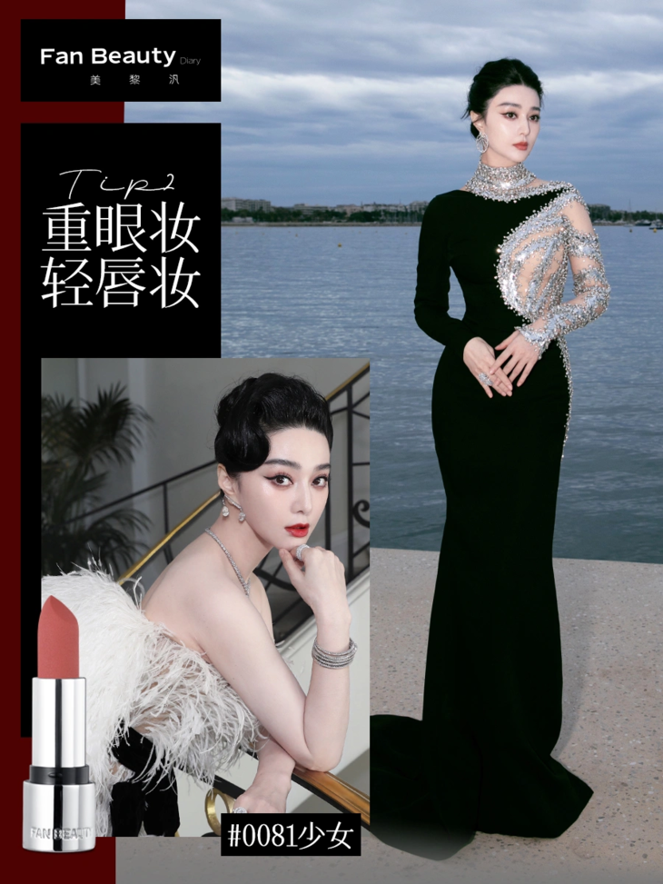 今年的戛纳电影节落下帷幕,风格百变的范小姐此次戛纳之行一共贡献了16套造型(sha疯了!)。从满是东方韵味的虎嗅山林到仙气飘飘即使戛纳造型风格多变,范小姐从头至尾仅用了Fan Beauty银镜迷踪红毯唇膏的三个色号—— 打造以不变应万变的绝美唇妆。
