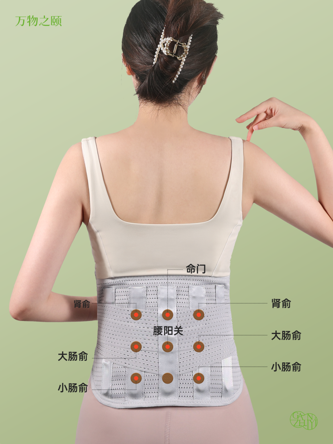 通过刺激腰部的腰阳关、命门穴、肾俞穴、大肠俞、小肠俞等重要穴位,促进血液循环,改善腰椎疲劳、酸痛状态。
