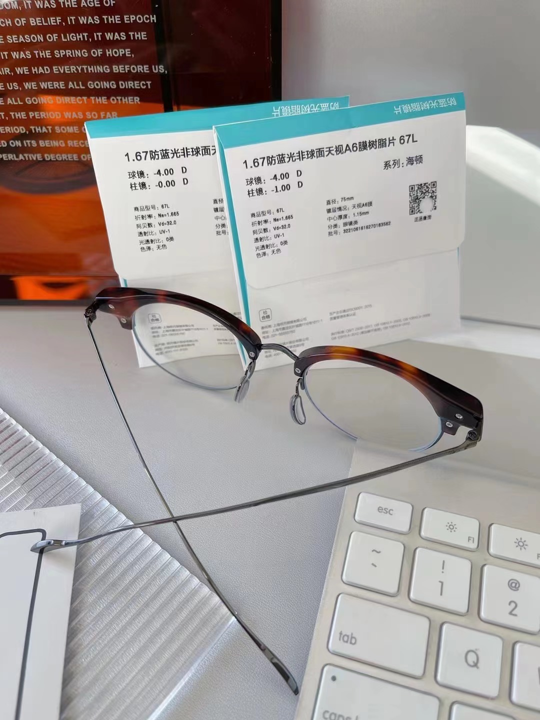 客配 CARIN玳瑁眉毛框近视400+散光100度明月1.67数码防蓝光