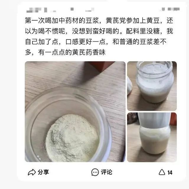 如果能在豆浆里加点养身体的好食材,那么就更棒了,这款黄芪党参豆浆粉是根据扶元养正方改良而来,尤其适合气血虚、脾胃又不好、身体差容易生病的叔叔阿姨们。