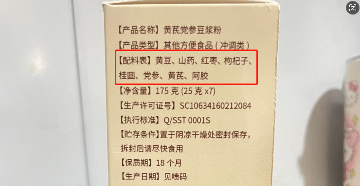 这款轩泰医黄芪豆浆粉还贴心的没有额外加入蔗糖,原料仅有:黄豆、山葯、红枣、枸杞子、桂圆、党参、黄芪、阿胶。