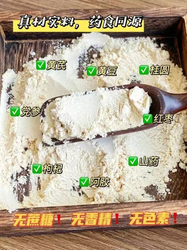 由营养专家一比一配比,除了主要的黄芪、党参、龙眼肉、大枣、阿胶5味食材,还加入了山葯兼顾健脾、枸杞滋阴养肾,又为了口感选用非 转 基 因 黄豆制成豆浆,不仅营养丰富,而且每天一杯作为早餐,方便好坚持~