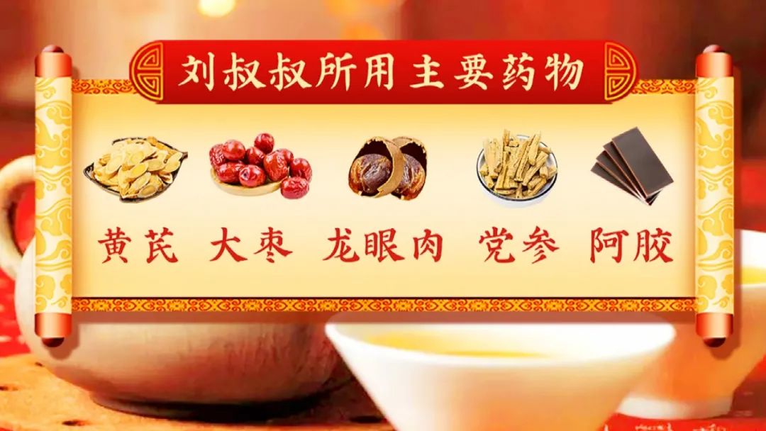 这个扶元养正方里有:黄芪、党参、龙眼肉、大枣、阿胶,都是葯食两用的食材,主要是补气养血,同时调养脾胃。