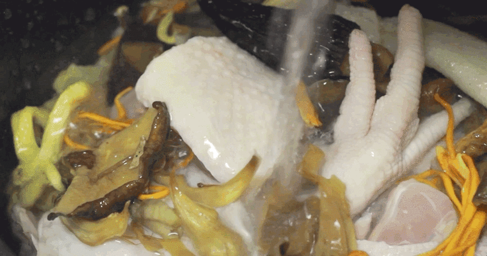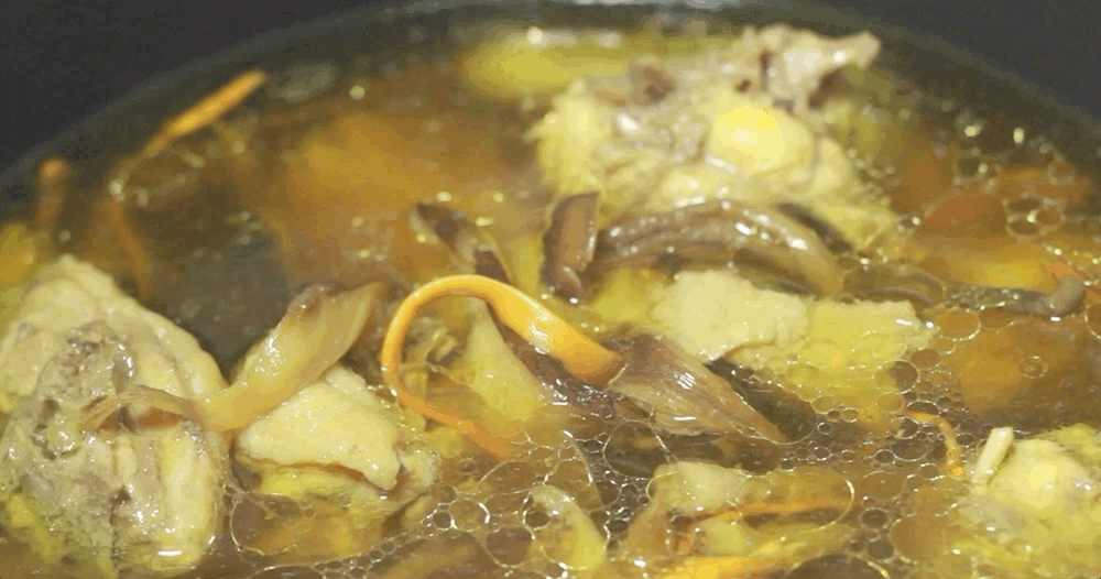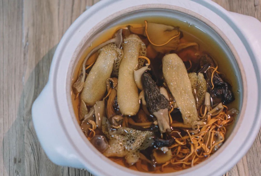 最后再点缀上几颗艳丽的虫草花,一锅菌汤,也是一副生活的图景。