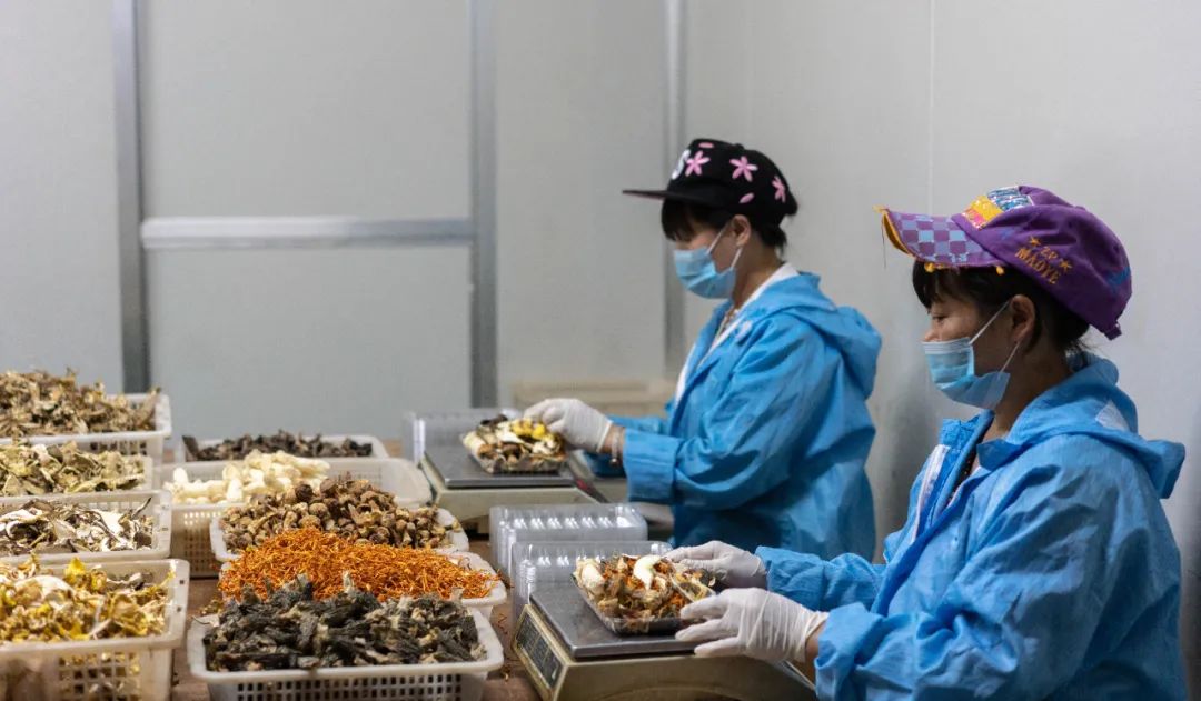 做好的干菌在进入包装环节之前,还会再经过一轮筛选,只有70%左右的干菌可以顺利进入到包装中。这份精挑细选,只为远方的你,食用时候的安心体验。