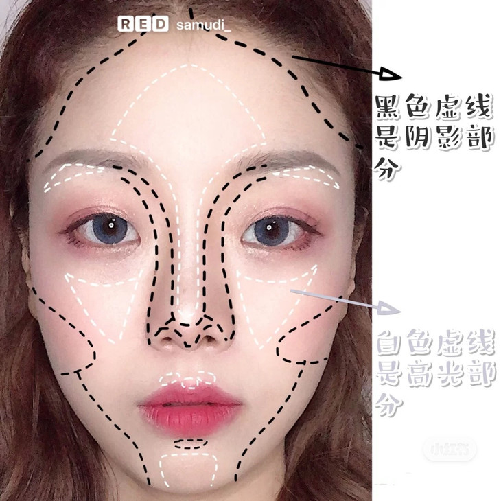 善用倒三角画法,比如额头和眼下位置