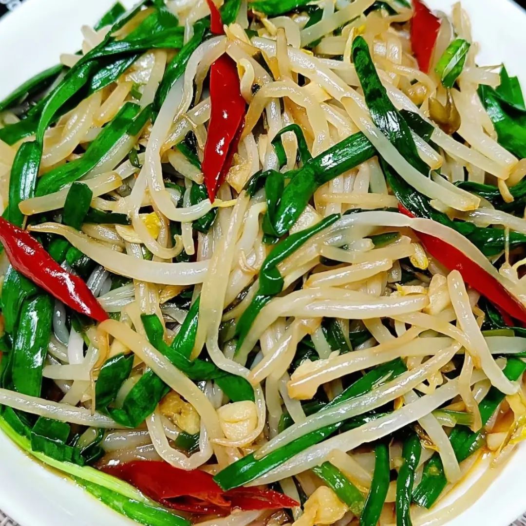 韭菜炒豆芽富含钙、铁、磷等矿物质,