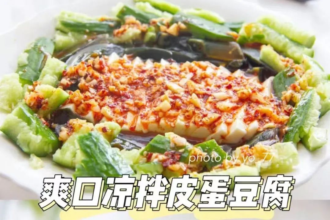 先把黄瓜洗干净,切成细丝,装入大碗里。接着,把皮蛋剥壳,切成小块,也放进碗里。这时候,黄瓜的清香豆腐的细腻和皮蛋的醇香就已经开始混合在一起了,让人忍不住想尝尝。