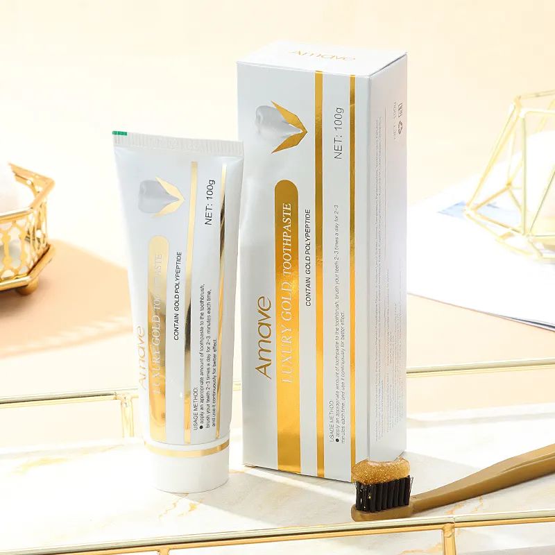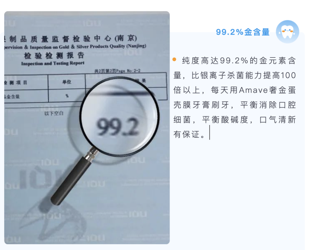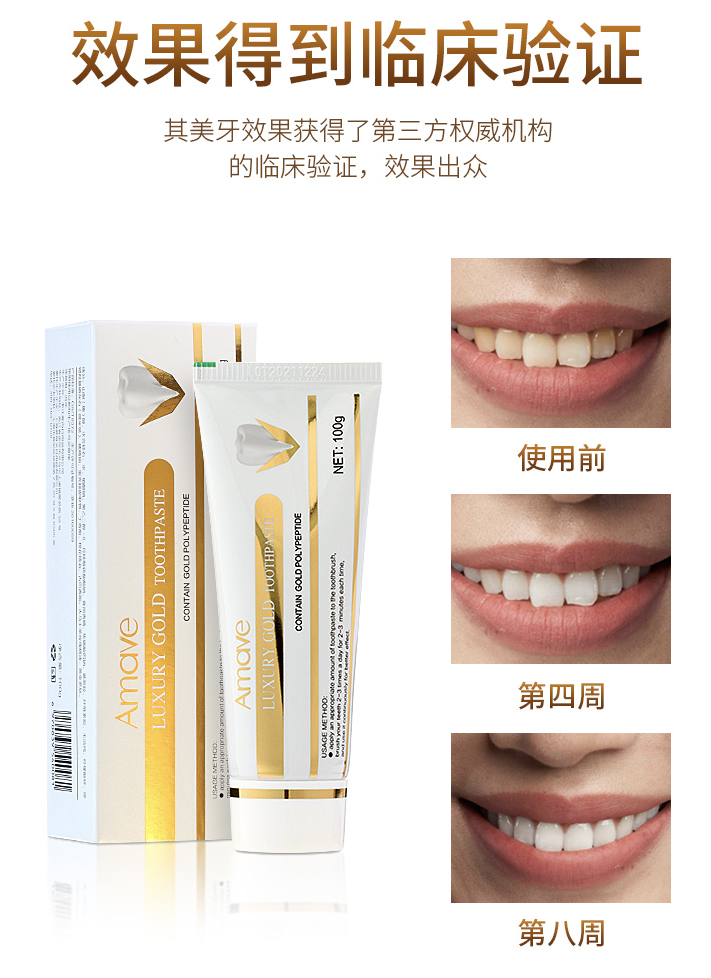 Amave奢金蛋壳膜牙膏添加黄金多肽,黄金释放负离子与黄金颗粒,杀菌消炎除异味,比银离子强大百倍!