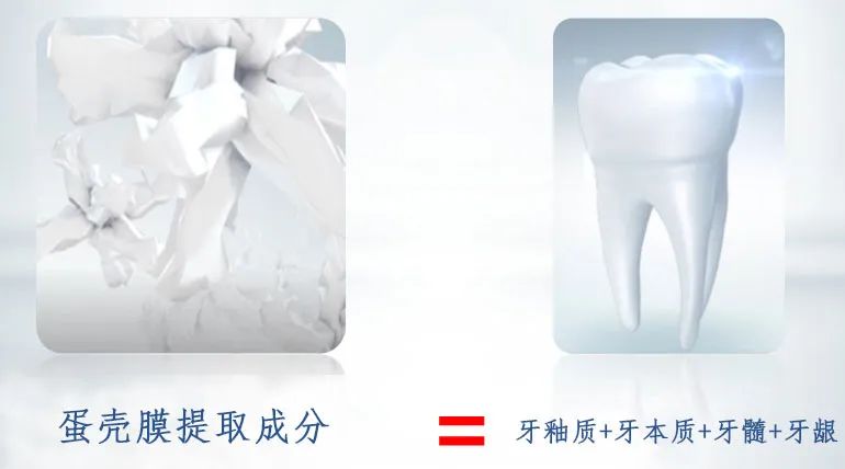 科学界发现的蛋壳膜里面提取的改性羟基磷灰石、硫酸软骨素、氨基酸等成分,与牙齿成分高度一致。