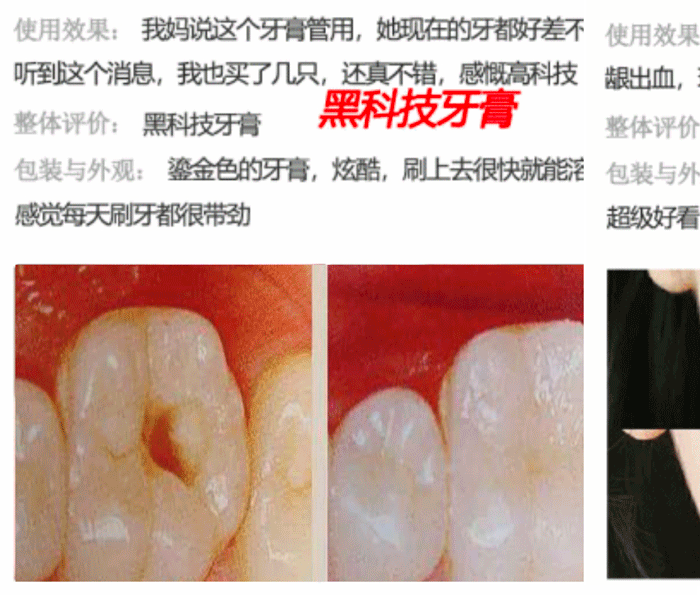 “蛋壳膜和牙齿99%以上相同的成分,用它每天刷牙,碎裂、破洞、长黑斑的牙齿不光能逐步修复,形成一层比钻石还硬的牙釉质,亮白、坚固如新,还能从此告别年年补牙、洗牙。”