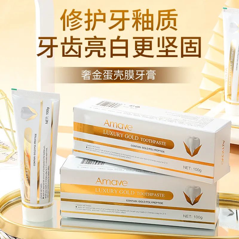 国内专注口腔护理品牌Amave,引进国外蛋壳膜提先进取技术,创新研发【奢金蛋壳膜牙膏】,口腔界重大突破,一款能补牙再生的牙膏。